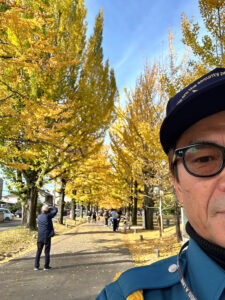 『学びの森プロムナード』(250mのイチョウ並木道)の一般の皆様が観光に訪れる為、本日は私も入り,隊員2名と計3名で『学びの森』駐車場の誘導業務に従事します。👮🏼