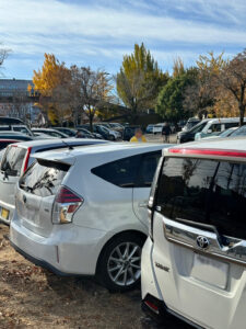 『学びの森プロムナード』(250mのイチョウ並木道)の一般の皆様が観光に訪れる為、本日は私も入り,隊員2名と計3名で『学びの森』駐車場の誘導業務に従事します。👮🏼
